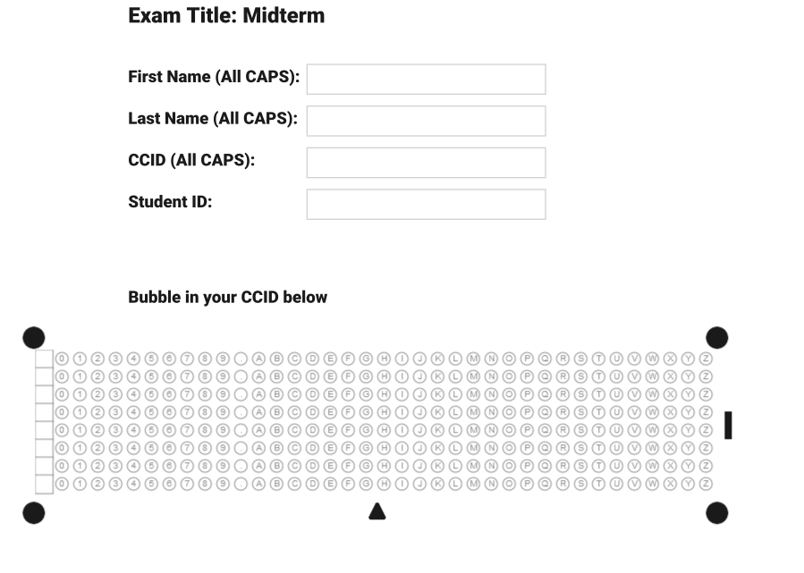 Once printed, these exams would now be given to students in-class who will fill in their name, and student ID number on their copy and complete their assessment: