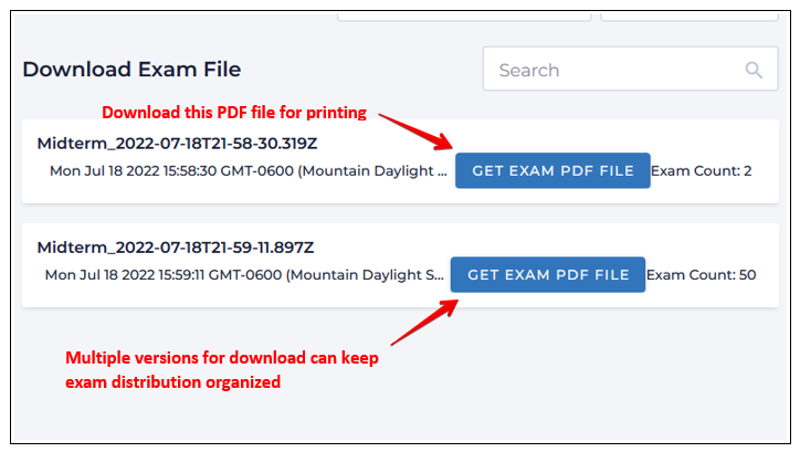 Number of exams generated for printing