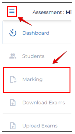 The Assign2 grading interface is accessed through the top left nav tray by clicking Exam Marking. Any exams that have ANY of their pages scanned will show up in the grading interface. The grading functions and workflows are the exact same as for online Assign2 assessments: