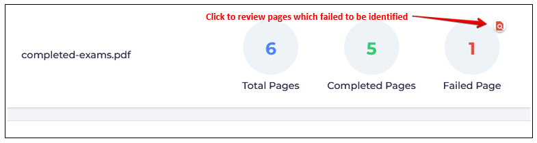 the Upload Exam File tab - from the Upload Exam File tab, open the failed pages interface by clicking on the document icon: