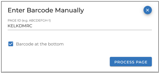 Enter the barcode, and click Process Page: